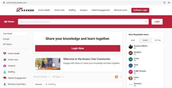Our goal for the User Community is for healthcare professionals who use our software to be able to connect with other users who may have similar interests and questions, as well as Axxess user tips they can share.