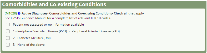 M1028 Active Diagnoses has been revised to include a “None of the above” response option.