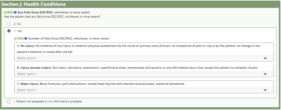 - J1800 Any Falls Since Start of Care or Resumption of Care
