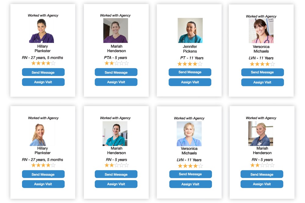 Clinicians doing visits using AxxessCARE are rated using a star system that makes it easy to spot a quality applicant and select the best person for the patient. The process is enjoyable for both the agencies and the clinicians who use the platform.