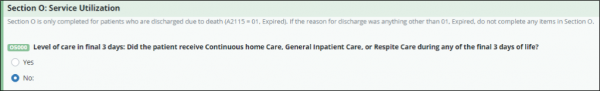The HIS Discharge will also generate Service Utilization for Section O of the HIS Discharge from all the visits that are present in the software during the last seven days of life for patients who are discharged due to death and were on Routine Level of Care.
