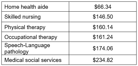 PDGM continues the practice of counting all billable visits toward the episode reimbursement threshold. Episodes that fall under the LUPA threshold are not reimbursed in the same way as a standard episode. Rather than reimbursing a fixed amount, the LUPA episode is reimbursed on a ‘per-visit’ basis. According to CMS, the CY2019 per-visit rate for providers that submit quality reporting data is as follows: