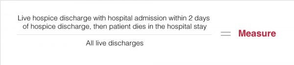 The second of two types of burdensome transitions in the Hospice Care Index is Live Discharges from Hospice Followed by Hospitalization with the Patient Dying in the Hospital. The hospitalization must occur within two days of the hospice discharge, with the patient dying in the hospital, to count as a burdensome transition.