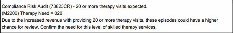 The Compliance Risk Audit flag identifies instances where the pattern of OASIS responses and planned care patterns have strong potential for triggering a post-payment review.