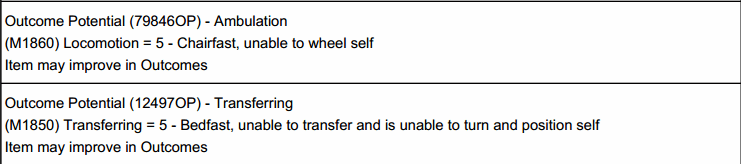 The Outcome Potential flag identifies situations where the organization has potentially underassessed a patient’s needs, based on the seven OASIS items where improvement over the course of care is measured.