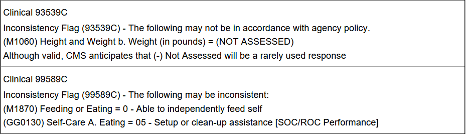 The Clinical Inconsistency flag identifies possible inconsistencies between OASIS responses on an assessment. These may or may not need to be adjusted.