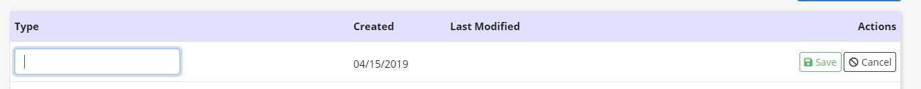 A new line will open on the list. Enter the name of the Upload Type and click Save in the Actions column.