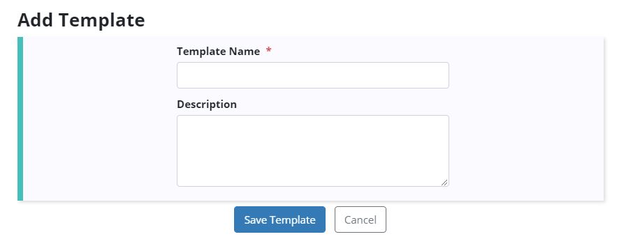 To add a new template, select the Add Template button in the top right of the screen. In the Add Template modal, enter a Template Name and Description. The Description is the text of the template you wish to enter. Click Save Template.
