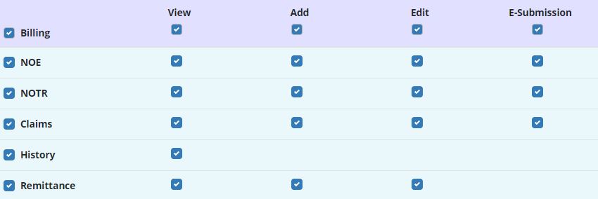 To give a user permission to view the Admin Dashboard, edit the user’s profile and navigate to the Permissions tab. In the Billing section, select View next to the NOE, NOTR and Claims. Click Save to complete the process.