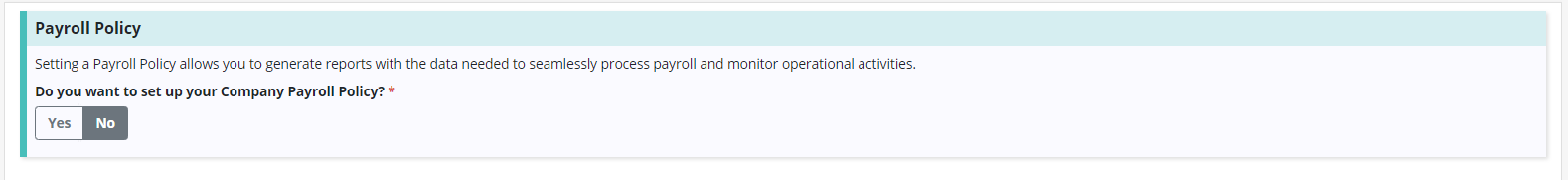 Under Payroll Policy, click Yes to begin setting up your company payroll policy.