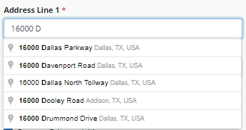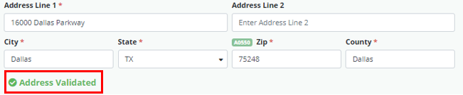 Select the appropriate address from the drop-down menu to automatically populate the city, state, ZIP and county. Addresses that are selected from the drop-down menu are validated automatically.