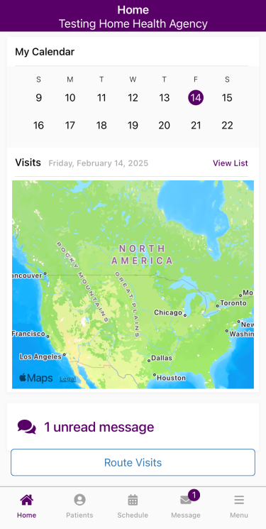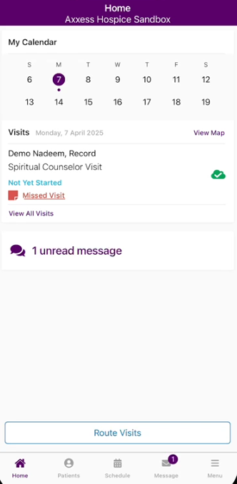 To route your visits for the day, click Route Visits on the Home screen in the Axxess Hospice mobile app.