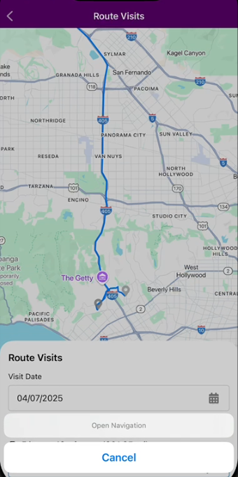 Tap Route Visits and select your preferred navigation app for turn-by-turn directions to each visit.
