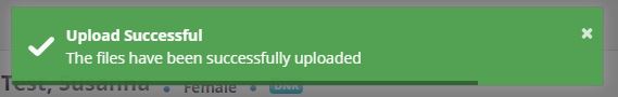 A green pop-up window will appear at the top of the screen confirming that the documents have been successfully uploaded and attached to the Patient Chart.