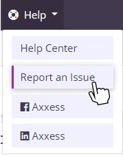 To access the Support Ticketing Center, click Report an Issue under the Help tab in Axxess Hospice.