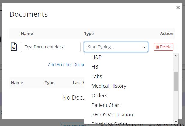 You can attach documents to each Patient Chart by selecting Manage Documents in the Actions menu in the top right corner of the Patient Chart.