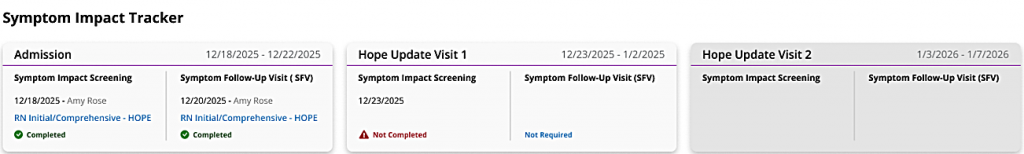 The Axxess Hospice HOPE Center is a powerful operational tool that helps organizations ensure compliance with HOPE regulations and provides clear visibility into the data being submitted onto the HOPE record. The HOPE Center provides a comprehensive view of a patient’s HOPE timeline and includes a symptom impact tracker, an interactive HOPE forms table, and a detailed record view with a scrubber. By enabling users to track required assessments and the status of each required CMS record in a centralized and intuitive interface, this enhancement streamlines operations and facilitates compliance.