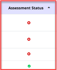 A red X will display in the Assessment Status column when symptom impact assessments or follow-up visits have not been completed. A green checkmark will display when these requirements have been met.