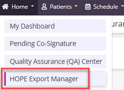 To access the export manager, select HOPE Export Manager under the Home tab.