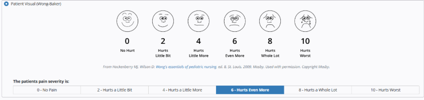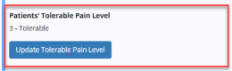 To update a patient’s pain level, navigate to the Clinical Information tab in the patient’s chart, select the pain level in the Tolerable Pain Level section and click Save.
