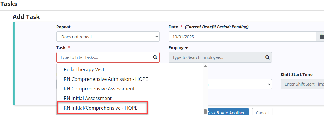 The RN Initial/Comprehensive – HOPE task pulls data associated with the admission record type for the HOPE assessment and CMS requirements. This assessment contains the HOPE scrubber to assist with asking and answering all required HOPE questions, ensures the NOE creation and assists in the initial plan of care development.