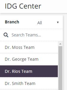 Teams are listed on the left side of the screen. Users can filter by agency branch or type in the Search bar to locate a specific team.