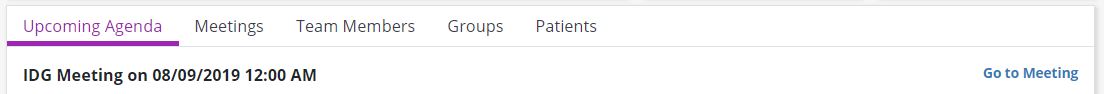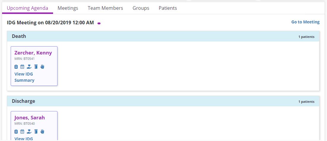 The Upcoming Agenda tab displays information for the team’s next IDG Meeting. Patients are categorized into the following sections based on their activity in the software: