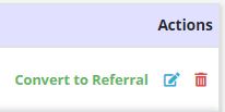 Referrals can be edited, deleted or converted to pending in the Actions column of the Referrals List.