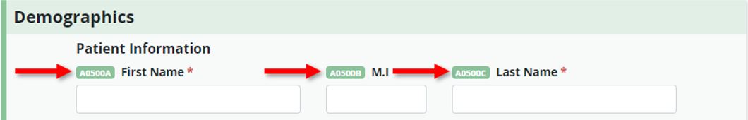 Information entered in the referral will flow to the Patient Profile. Hospice Item Set (HIS) demographic information appears in sage green with the HIS locator identifier to the left of the field name.