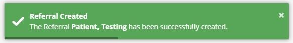 At the top of the screen, a green pop-up box will confirm successful creation of the Referral.