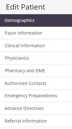 The Patient Profile is the source of information that flows to documents, Medication Profiles, Plans of Care and Physician Orders.