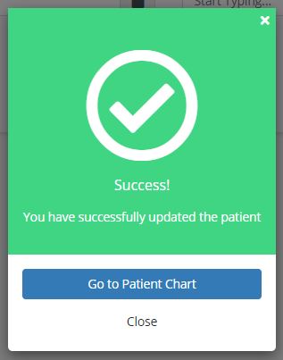 A green pop-up notification will confirm that the Patient Profile was updated successfully. Click Go to Patient Chart to return to the chart.