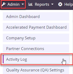 To access the activity log, navigate to the Admin tab and select Activity Log.