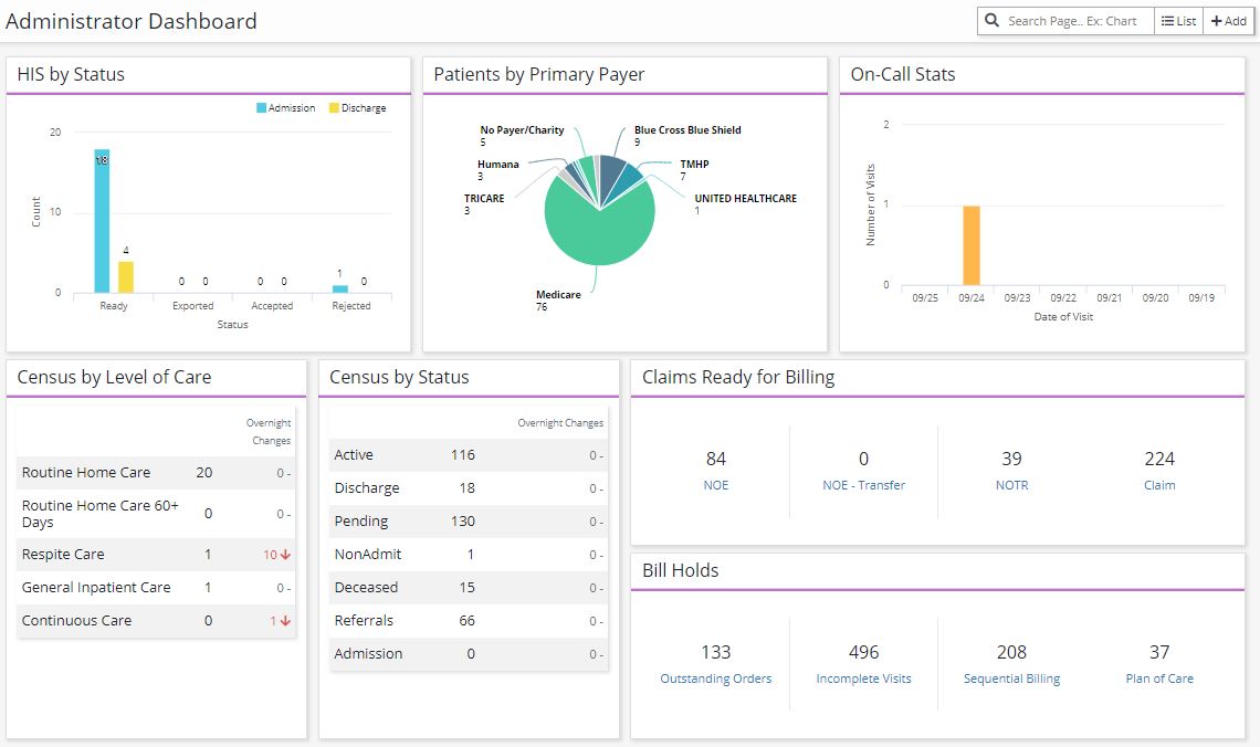 The Administrator Dashboard in Axxess Hospice provides direct, real-time access to the data that matters most to hospice administrators. The data in the Admin Dashboard enables data-driven decision-making and provides valuable insight into all areas of clinical, operational and financial operations.