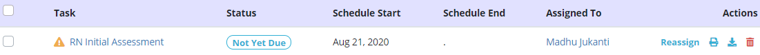 Editing benefit period information can cause previously scheduled tasks to fall outside of a patient’s new benefit period date range. When this happens, users will be alerted in the task lists on patient schedules.