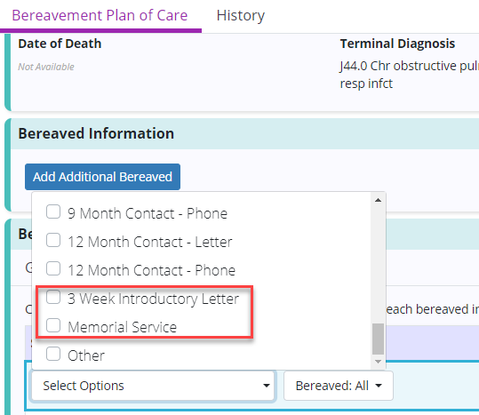 The Bereavement Plan of Care in Axxess Hospice now provides two new service type options: