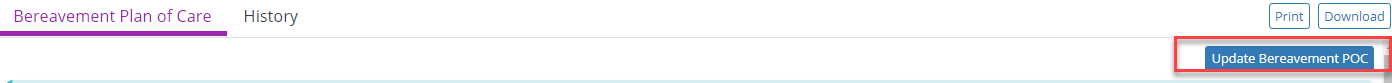 To schedule bereavement services, navigate to the Patients tab and select Bereavement. Select the desired patient from the menu on the left side of the screen and click Update Bereavement POC.