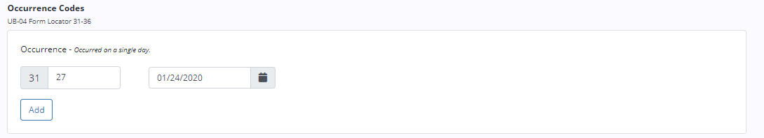 During the claim verification process, the code and date for OC 27 will automatically populate under Occurrence Codes in the Payers and Codes sections of the claim form.