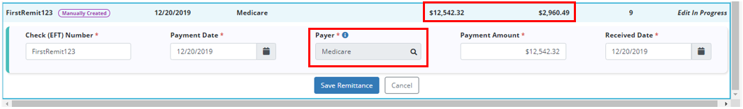 If any payments have been posted on the remittance, the Payer field cannot be edited.