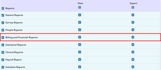 To give a user permission to view billing and financial reports, edit the user’s profile and navigate to the Permissions tab. In the Reports section, select View next to the Billing and Financial Reports permission. Click Save to complete the process.