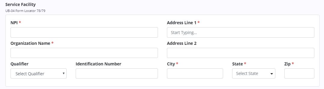 Billing tab ➜ Claims ➜ Verify under Actions ➜ Providers section ➜ Add Service Facility ➜ Service Facility section ➜ NPI