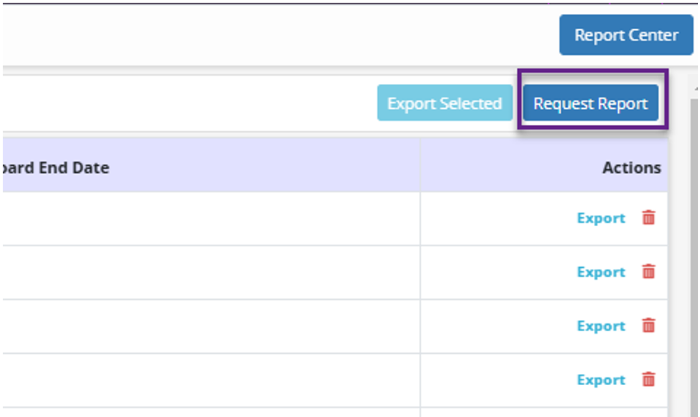 To generate a new report, select Request Report at the top of the screen.
