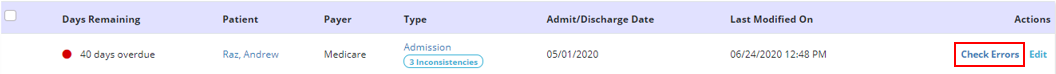 HIS documents that are edited during the review process must be re-checked for errors prior to approval. Documents that have not been checked for errors cannot be approved until they have been checked. Click Check Errors under Actions to run the HIS scrubber for documents that are pending approval.