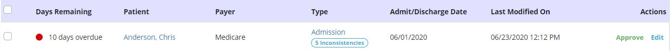 To approve an HIS file without correcting inconsistencies/warnings, select Complete Without Updating. Select Return to navigate back to the flagged areas and make corrections in the documentation before approving the file.