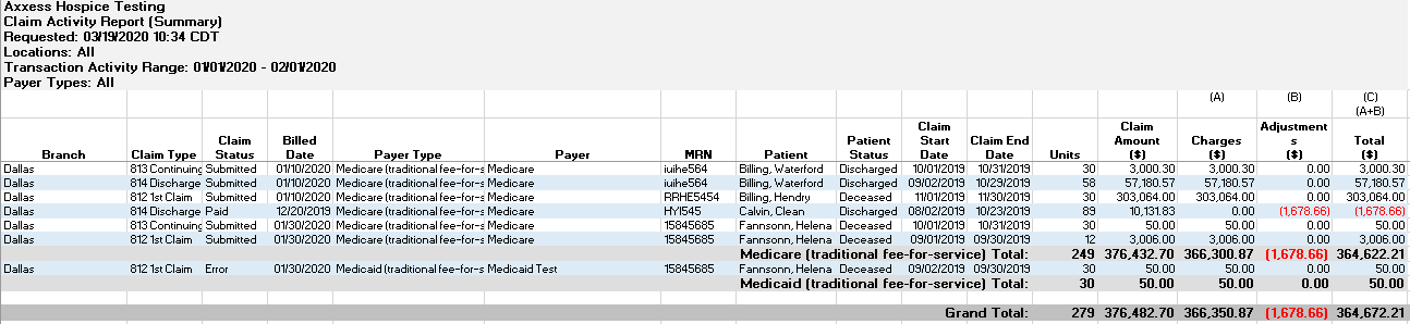 To view the Claim Activity Report, users must have permission to view Billing and Financial Reports.