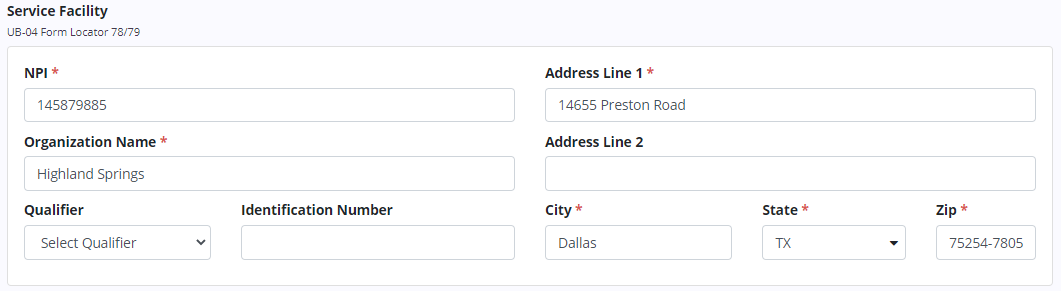 To help agencies fulfill this requirement, Axxess Hospice automatically populates the patient’s service facility information to claims once it has been documented in the system.