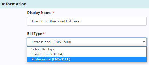 In the Bill Type menu, select Professional (CMS-1500).