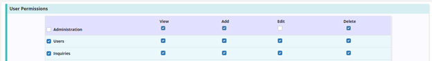 Users must have permissions enabled to view, add, edit and/or delete users based on their role at the agency. To give a user permission to edit users, edit the user’s profile and navigate to the Permissions tab. Scroll to the Administration section and check the boxes next to the Users permission.