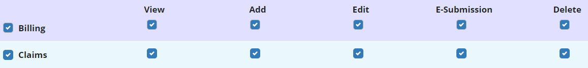 To give a user permission to view, add, edit and delete claims, edit the user’s profile and navigate to the Permissions tab. In the Billing section, select View, Add, Edit and Delete next to the Claims permission. Click Save to finish granting the permissions to the user.