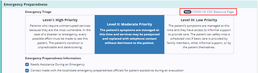 The next link has been added in the Emergency Preparedness tab of the patient profile.